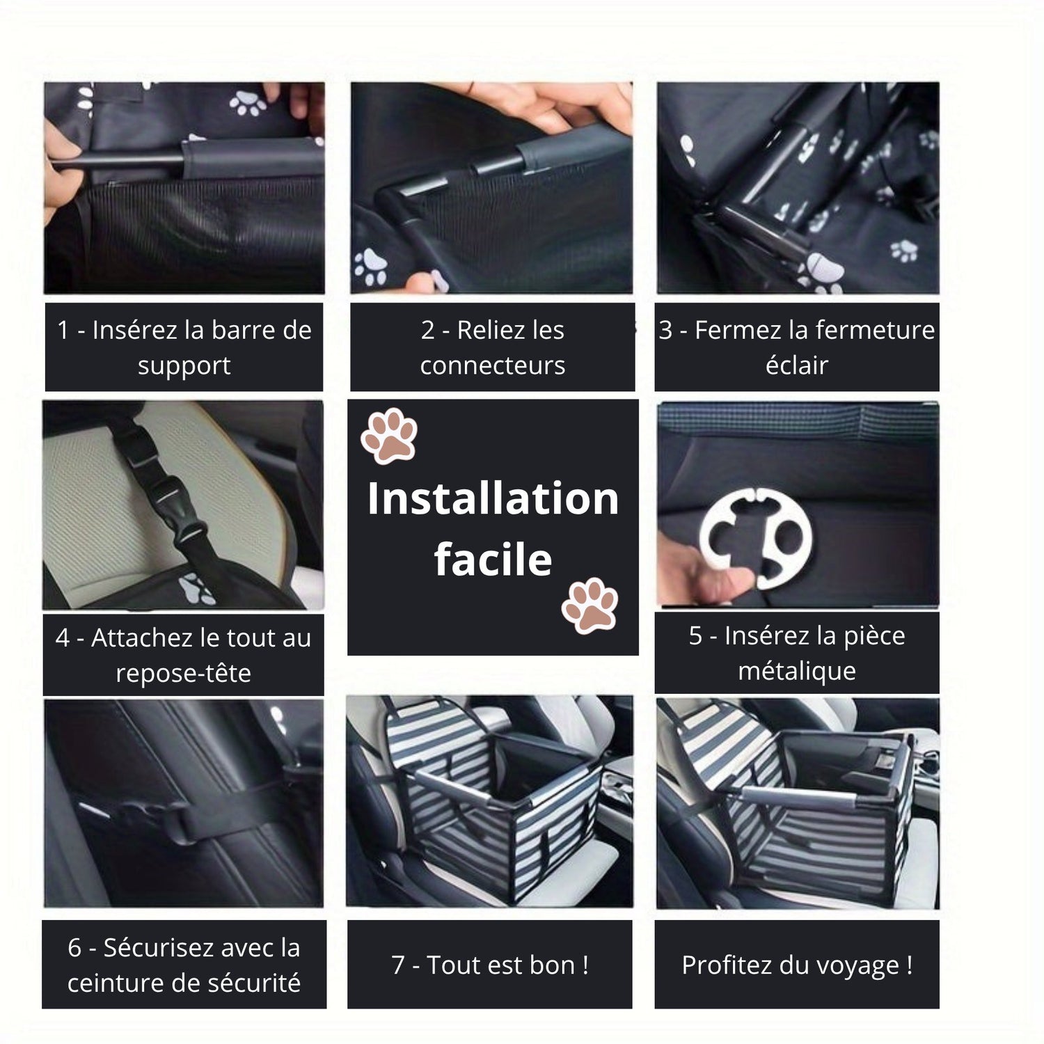Ce siège auto pour chien est sécurisé, compact et bien ventilé. Idéal pour les petits et moyens chiens, avec sa structure carrée rigide et sa sangle d’attache intégrée.