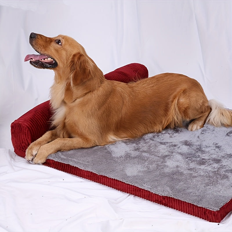 Offrez un lit pour chien en mousse mémoire de forme avec housse en velours côtelé rouge et coussin cœur intégré. Confort, style et matière douce en polyester réunis dans ce canapé élégant.