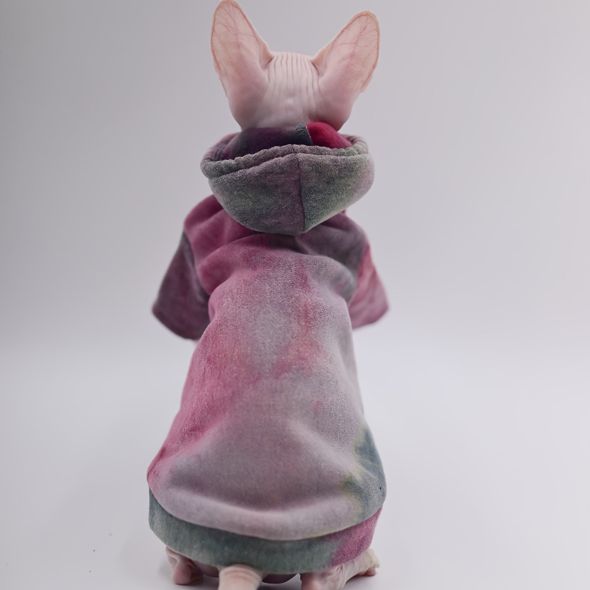 Ce sweat à capuche multicolore est parfait pour les Sphynx, Devon Rex ou Peterbald.
