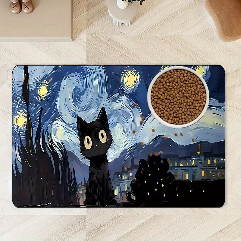 Tapis de repas pour animaux, inspiré de Van Gogh, imperméable et antidérapant. Protège le sol avec style, facile à nettoyer et idéal pour chiens et chats.