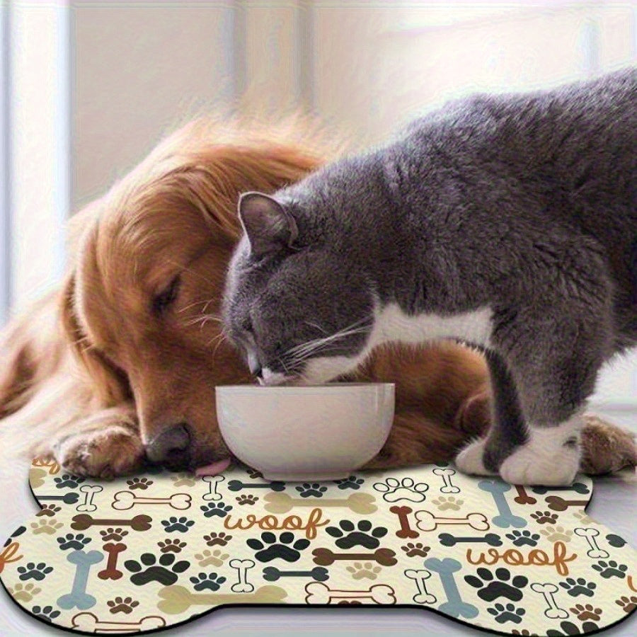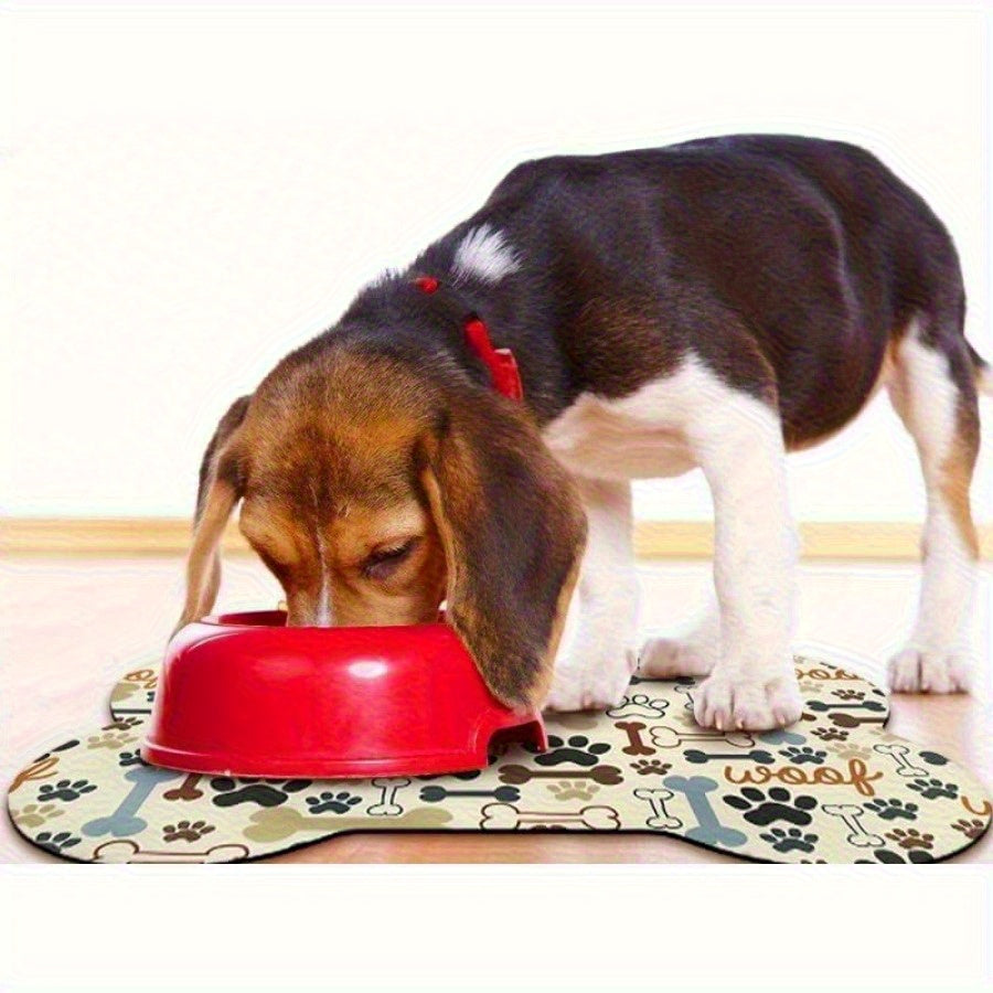 Ce tapis gamelle en diatomite, en forme d’os imprimé, est absorbant, antidérapant et garde le sol propre autour des gamelles de votre chien.