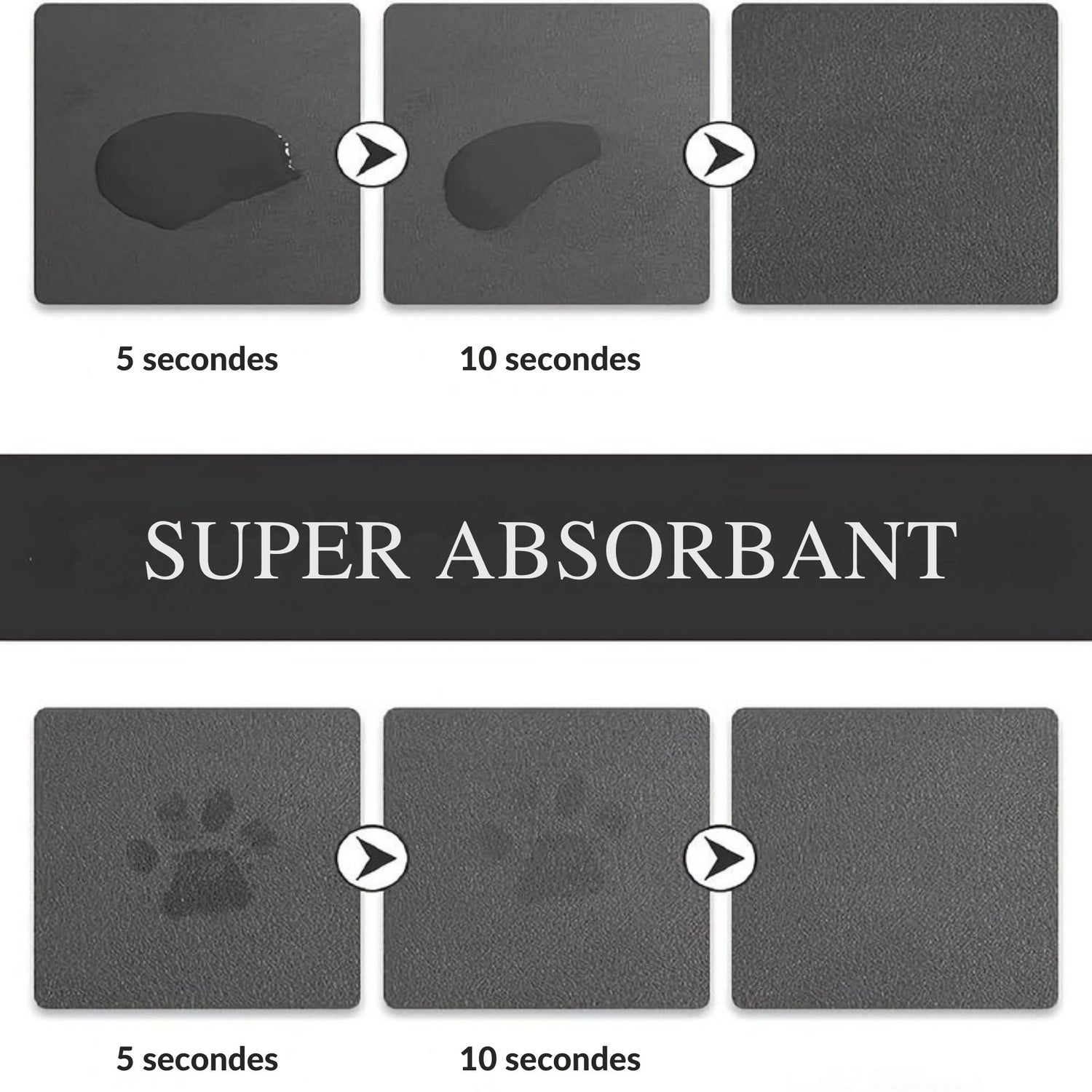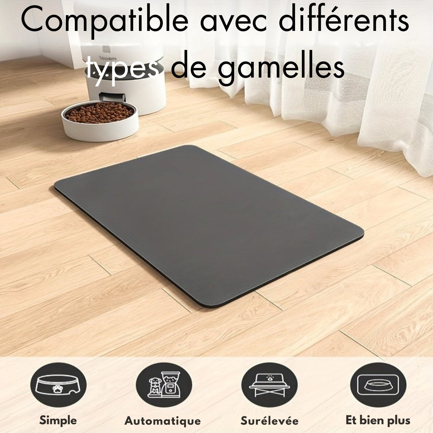 Un tapis absorbant et antidérapant pour chiens et chats. Polyester haut de gamme, design sobre, idéal pour les coins repas ou les siestes au sec.