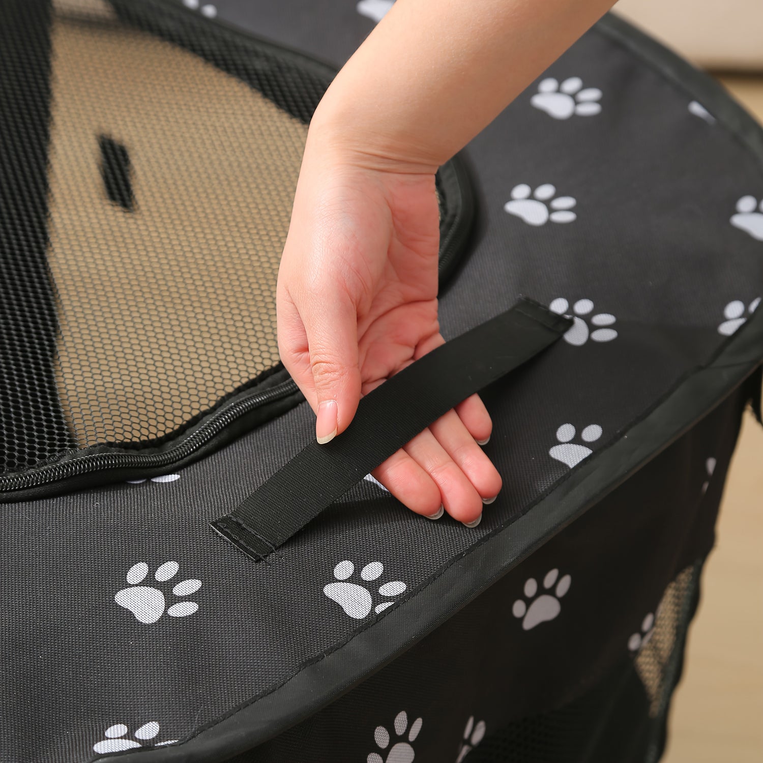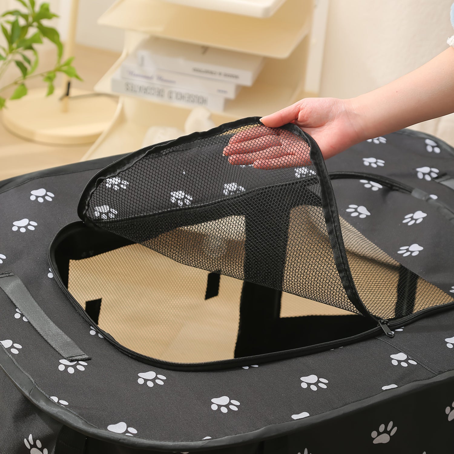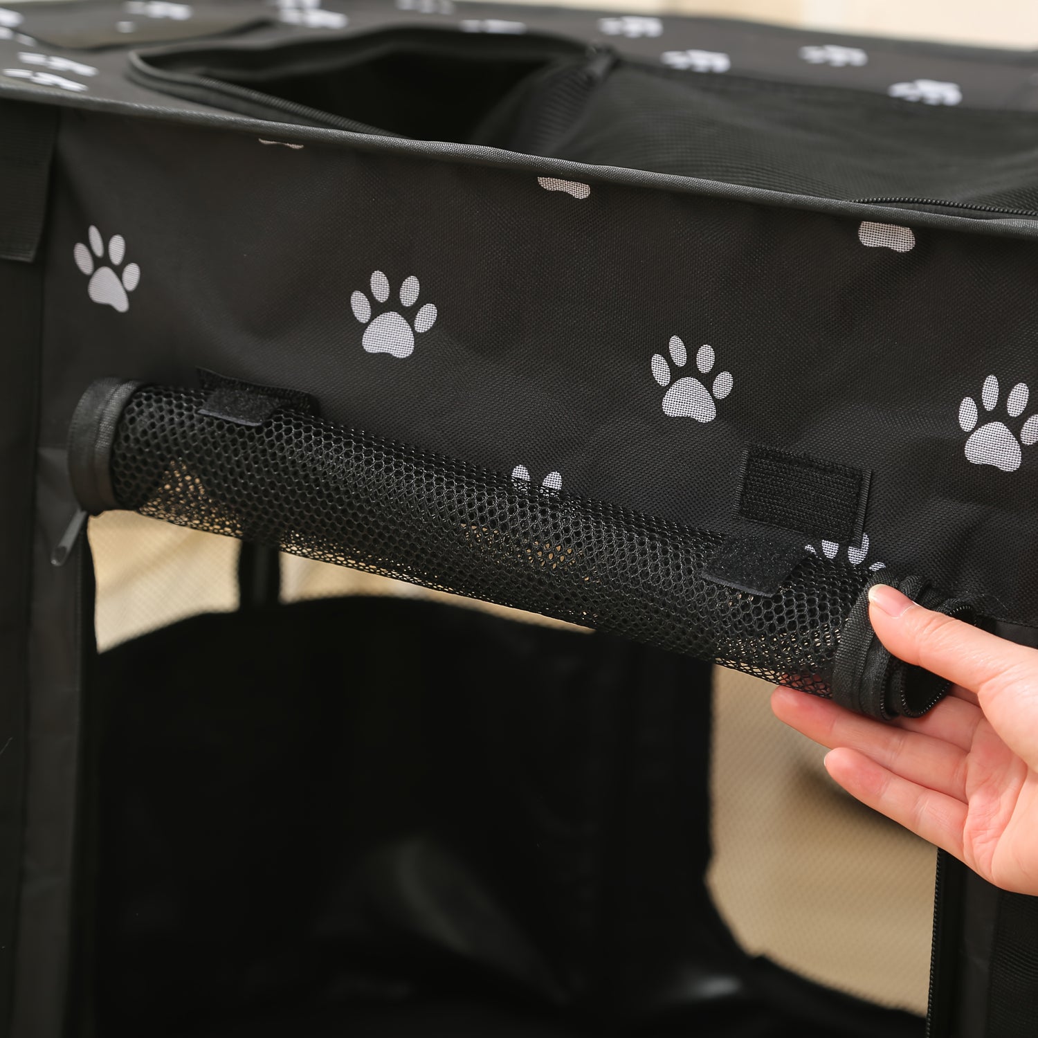 Maison pliable noire pour animaux, motifs pattes ludiques