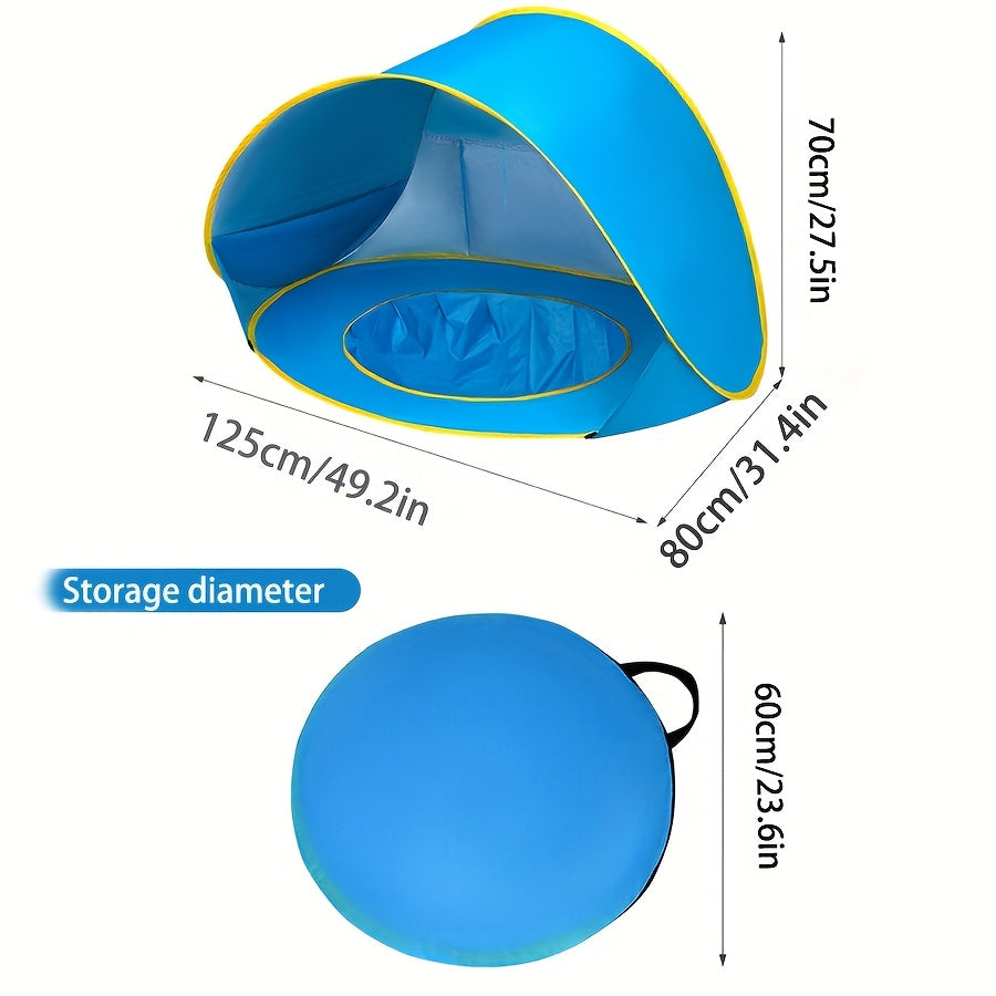 Tente de plage pour chien pliable avec bassin, conçue en polyester résistant. Parfaite pour les sorties à la mer, le camping ou le jardin. Ultra légère, facile à ranger.