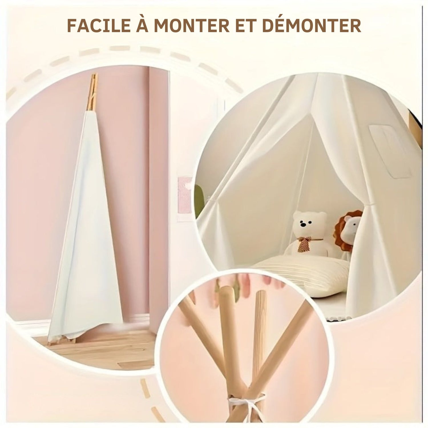 Le tipi est facile à monter et à plier à plat pour le rangement ou le transport.