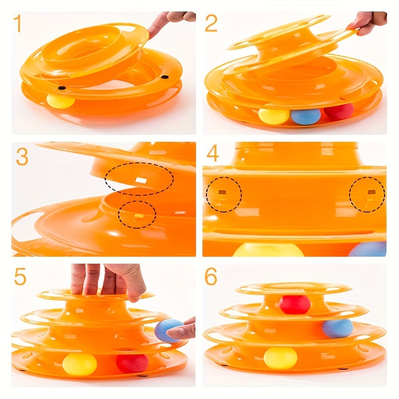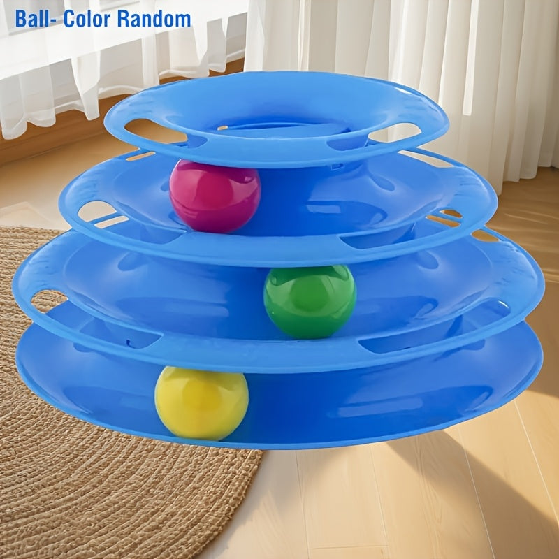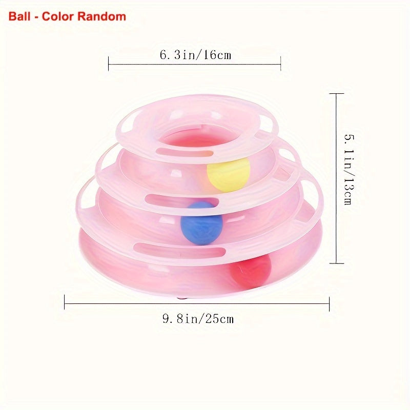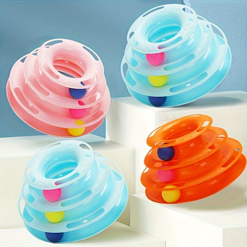 Divertissez votre chat avec une tour de jeu en plastique à trois niveaux, équipée de boules colorées pour stimuler son agilité et éveiller son instinct de chasseur.