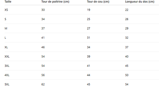 - Dimensions : ´Voir guide des tailles