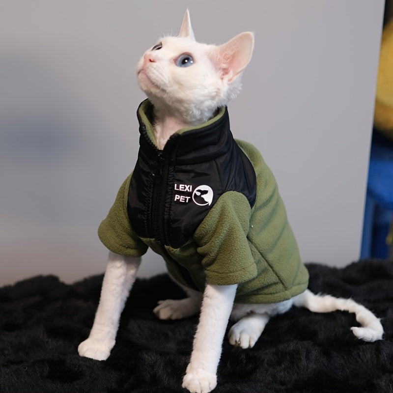 Ce manteau épais pour chats sans poils est parfait pour affronter les saisons fraîches avec style. Fabriqué en polaire chaude et doté d’un revêtement extérieur noir zippé, il garde votre compagnon bien au chaud tout en lui assurant une grande liberté de mouvement.