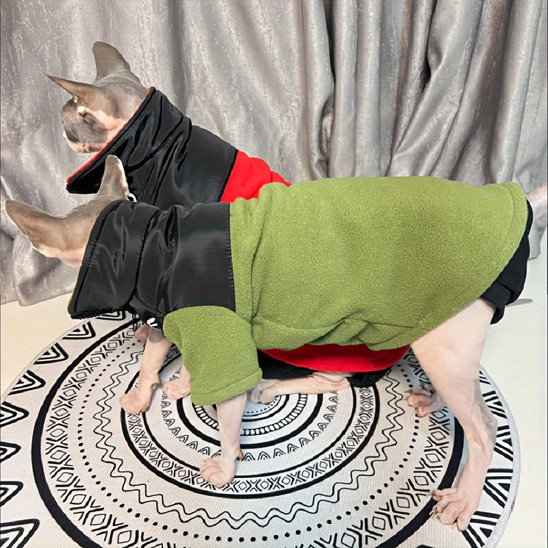 Veste Zippée Épaisse pour Chats Sans Poils – Manteau Chaud Rouge & Noir pour Automne/Hiver